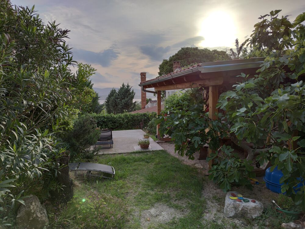 Vom ca. 100 qm2 grossen mediterranen Garten hat man Meerblick und ausreichend Platz für Sitzgelegenheiten und Liegestühle.