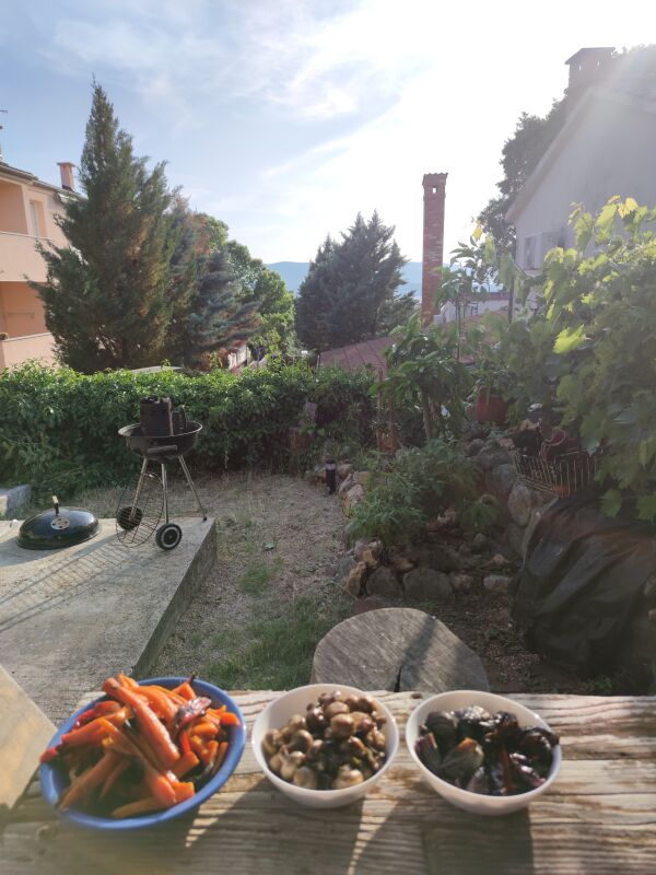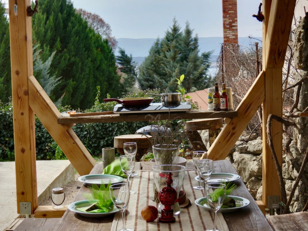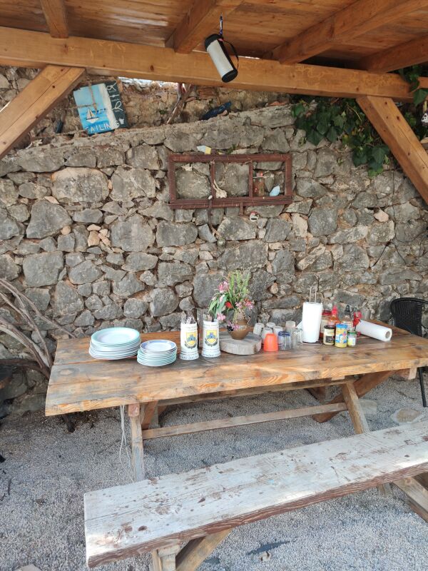 Insel Krk - Ferienwohnung Porthos mit schattiger Pergola mit Outdoorküche, Bar und Kugelgrill